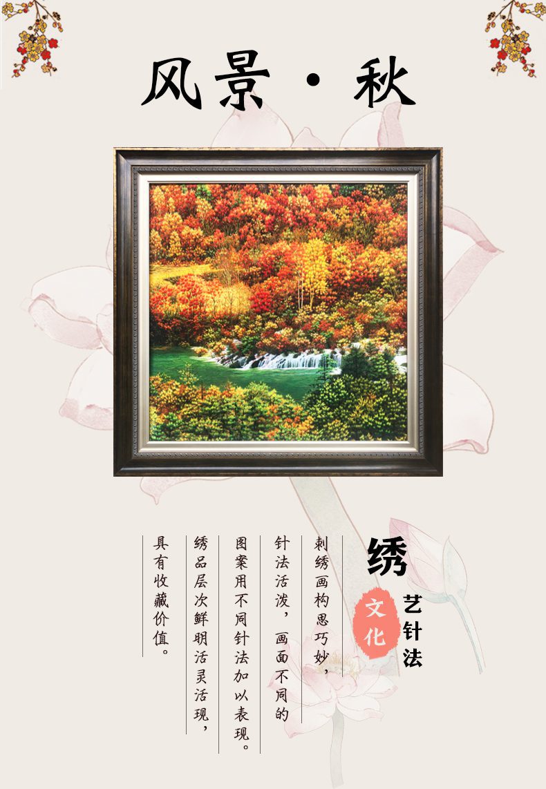 宝应绣乱针绣苏绣手工刺绣装饰画风景秋