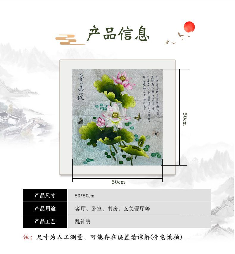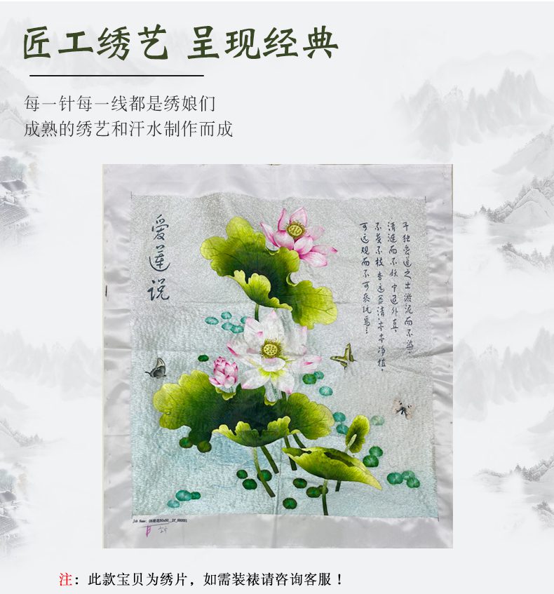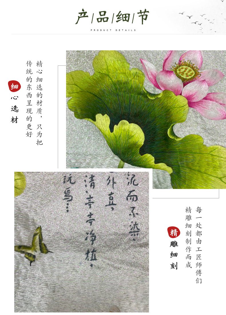 首页 » 产品 » 苏绣乱针绣宝应绣手工绣片50*50cm 首页 / 绣片 / 苏绣乱针绣宝应绣手工绣片50*50cm 苏绣乱针绣宝应绣手工绣片50*50cm 分类: 绣片 描述 用户评价 (0) 描述 绣山绣水绣生活,江苏绣达人工艺品有限公司专业手工刺绣26年,精湛的手工刺绣工艺.绣达人公司旗下有500名绣娘,本公司专业生产手工刺绣,手工刺绣产品定制。刺绣手法,苏绣,宝应绣,乱针绣,主要生产手工刺绣装饰画,手工刺绣屏风,手工刺绣扇子,手工刺绣服饰,手工刺绣箱包…. 产品分类: 手工刺绣装饰画,手工刺绣摆件,手工刺绣团扇,手工刺绣服饰,手工刺绣绣品批发,手工刺绣定制 关注我们的微信公众号: 江苏绣达人工艺品有限公司企业淘宝店铺: 评价 目前还没有评价 成为第一个“苏绣乱针绣宝应绣手工绣片50*50cm” 的评价者 取消回复您的邮箱地址不会被公开。 必填项已用 * 标注名称 * 电子邮件 * 您的评级 * 评价… 完美 很好 普通 还行 极差 您的评价 * 在此浏览器中保存我的显示名称、邮箱地址和网站地址,以便下次评论时使用。 相关产品 绣片 苏绣乱针绣宝应绣手工绣片50*90cm 绣片 苏绣乱针绣宝应绣手工绣片50*85cm 绣片 【咏鹅】苏绣手工刺绣绣片 品牌: 绣达人 材质:纯蚕丝、化纤、实木、发泡框 风格:中式 工艺:纯手工宝应乱针绣 规格: 画芯尺寸: 20*30 cm 绣片 苏绣乱针绣宝应绣手工绣片60*80cm