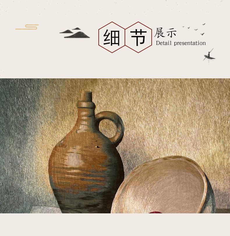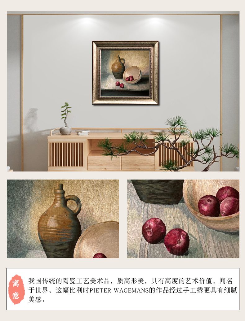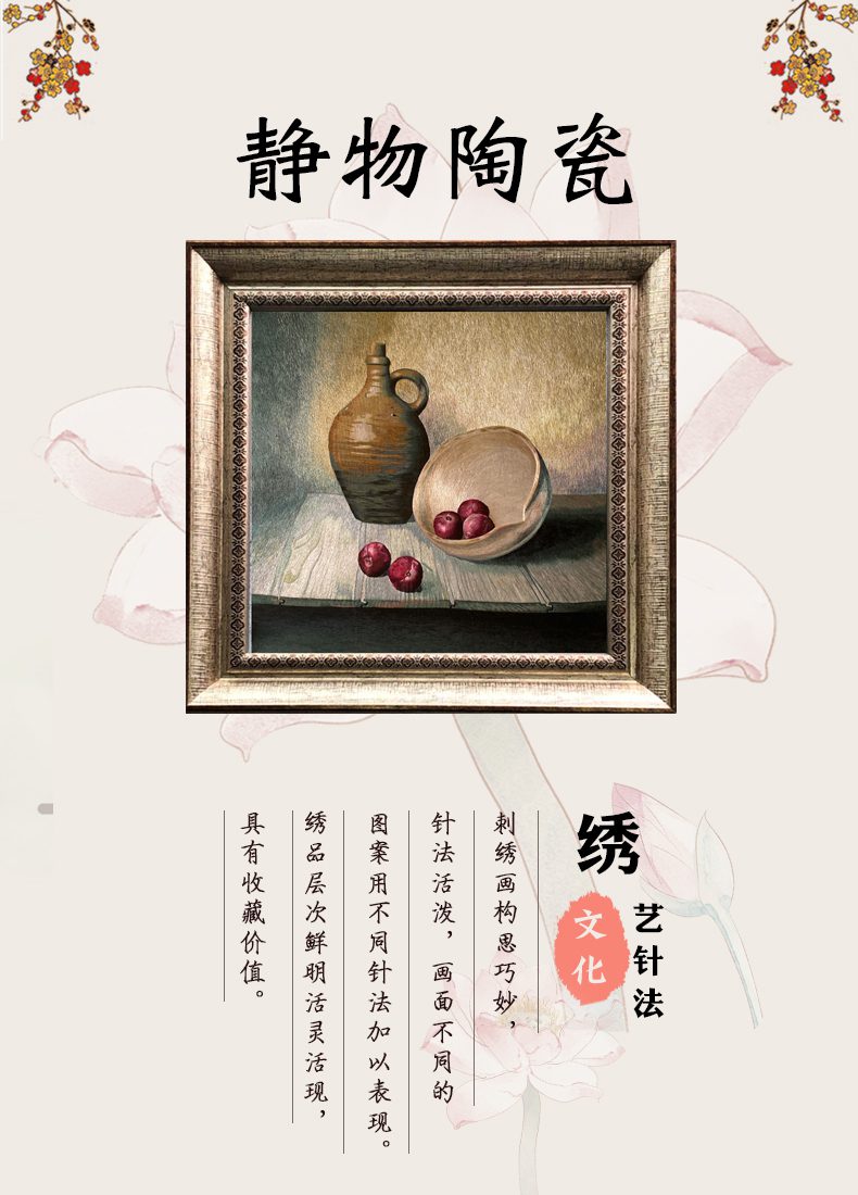 苏绣乱针绣宝应绣手工刺绣挂画静物陶瓷
