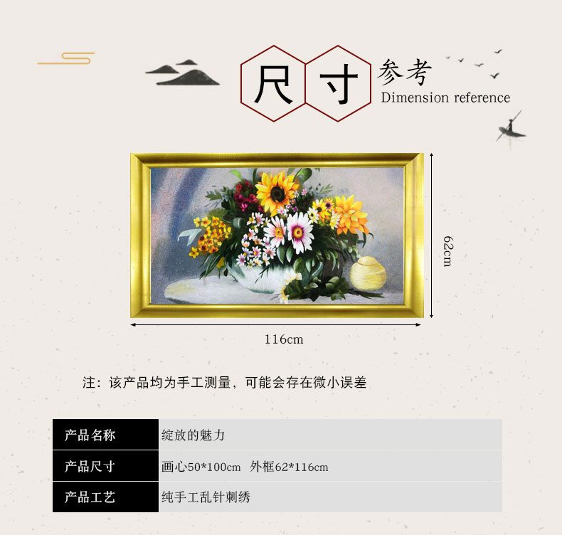 首页 » 产品 » 【绽放的魅力】手工刺绣苏绣乱针绣宝应绣装饰画 首页 / 装饰画 / 【绽放的魅力】手工刺绣苏绣乱针绣宝应绣装饰画 【绽放的魅力】手工刺绣苏绣乱针绣宝应绣装饰画 品牌: 绣达人 货号: 材质:纯蚕丝、化纤、实木、发泡框 风格:中式 工艺:纯手工宝应乱针绣 规格: 画芯尺寸:50*120 cm 规格:外框尺寸:62*136 cm 分类: 装饰画 标签: 乱针绣, 宝应绣, 花鸟系列绣品, 苏绣 描述 用户评价 (0) 描述 评价 目前还没有评价 成为第一个“【绽放的魅力】手工刺绣苏绣乱针绣宝应绣装饰画” 的评价者 取消回复您的邮箱地址不会被公开。 必填项已用 * 标注名称 * 电子邮件 * 您的评级 * 评价… 完美 很好 普通 还行 极差 您的评价 * 在此浏览器中保存我的显示名称、邮箱地址和网站地址,以便下次评论时使用。 相关产品 装饰画 【花团锦簇】手工刺绣苏绣宝应绣乱针绣装饰画 品牌: 绣达人 货号: 材质:纯蚕丝、化纤、实木、发泡框 风格:中式 工艺:纯手工宝应乱针绣 规格: 画芯尺寸: 60*80 cm 规格:外框尺寸:72*92 cm 装饰画 【慕阳】手工刺绣苏绣乱针绣宝应绣装饰画 品牌: 绣达人 货号:HN70100002 材质:纯蚕丝、化纤、实木、发泡框 风格:中式 工艺:纯手工宝应乱针绣 规格: 画芯尺寸:70*100 cm 规格:外框尺寸:82*112c cm 装饰画 【苹苹安安】苏绣装饰画乱针绣宝应绣 品牌: 绣达人 货号: 材质:纯蚕丝、化纤、实木、发泡框 风格:中式 工艺:纯手工宝应乱针绣 规格: 画芯尺寸:60*70 cm 规格:外框尺寸:72*82 cm 装饰画 【桃之韵】手工刺绣苏绣乱针绣宝应绣装饰画 品牌: 绣达人 货号: 材质:纯蚕丝、化纤、实木、发泡框 风格:中式 工艺:纯手工宝应乱针绣 规格: 画芯尺寸:50*70 cm 规格:外框尺寸:62*82 cm
